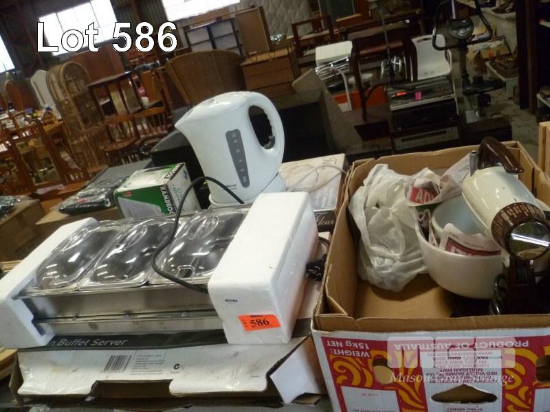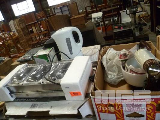 HOUSEHOLD ITEMS, IRON, JUG, PUNCH SET, MIXMASTER AND BUFFET SERVER