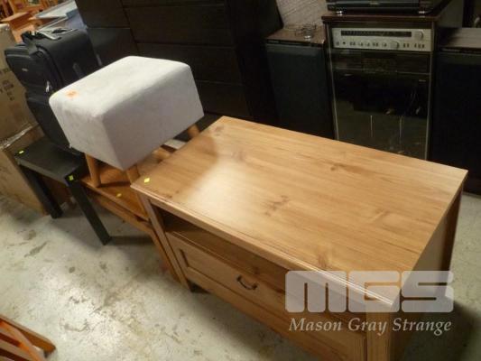 TIMBER LAMINATE SINGLE DRAWER UNIT, TIMBER COFFEE TABLE, BLACK LAMINATE SIDE TABLE, STOOL & CARRY BAG
