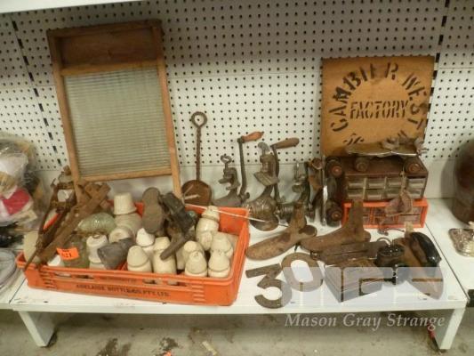 VARIOUS RUSTIC ANTIQUES INC GLASS WASHBOARD, 1 x SHELF