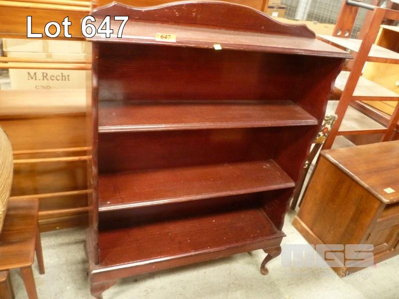 ROSEWOOD STAIN BOOKCASE, 3 TIER, CABRIOLE LEGS