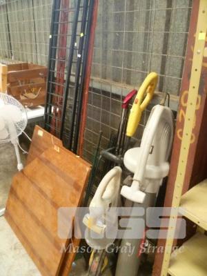 CORNER SHELF UNIT, STEEL LADDER, STEAM CLEANER & 3 x RYOBI TOOLS