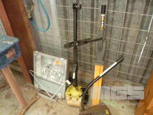 SBP INDUSTRIAL LIGHT FITTINGS, HALOGEN, RYOBI PETROL LINE TRIMMER WITH RYOBI HEDGE ATTACHMENT
