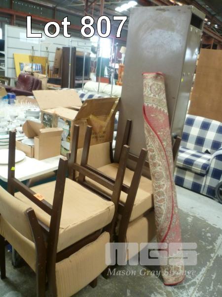 4 X DINING CHAIRS, RED CIRCULAR FLOOR RUG & SINGLE DOOR EMPLOYEES LOCKER