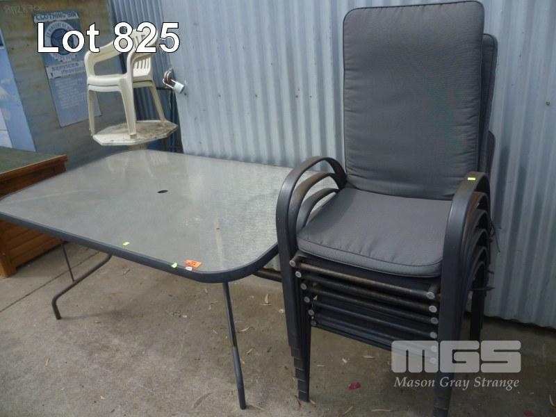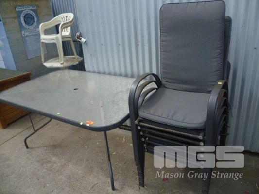 ALUMINIUM FRAME 7 PIECE OUTDOOR SETTING INC RECTANGULAR GLASS TOP TABLE & 6 x ARM CHAIRS