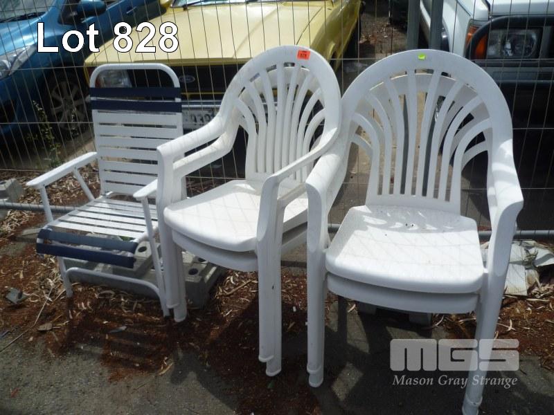 SET 4 PLASTIC STACKABLE CHAIRS & FOLD UP CHAIR