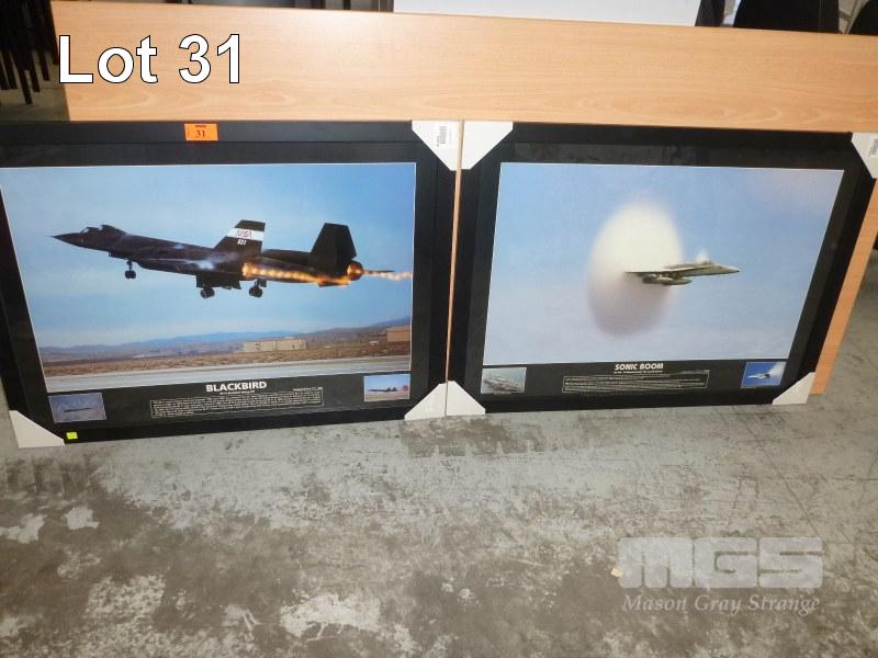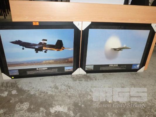 2 x FRAMED PRINTS, SONIC BOOM & BLACK BIRD, 960 x 660mm