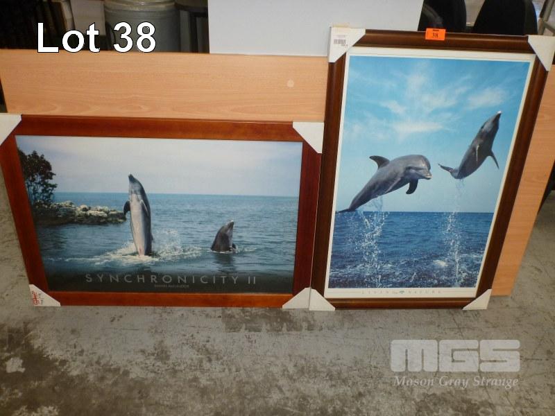 2 x FRAMED PRINTS, DOLPHINS, 960 x 660mm