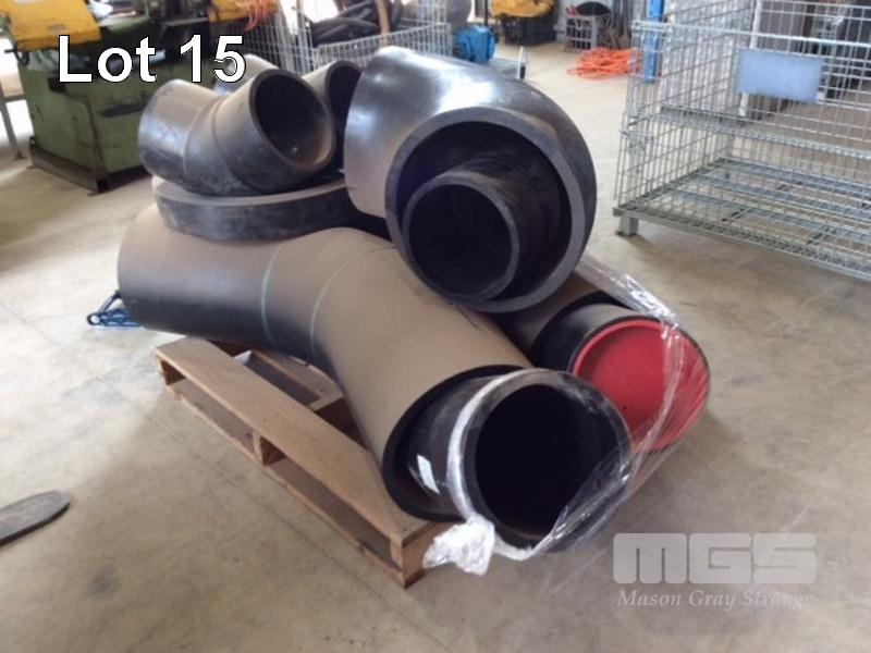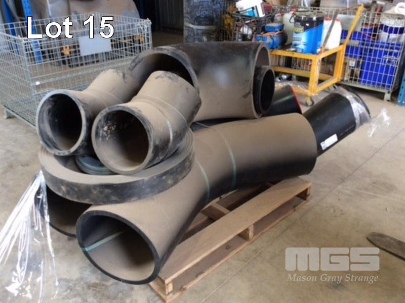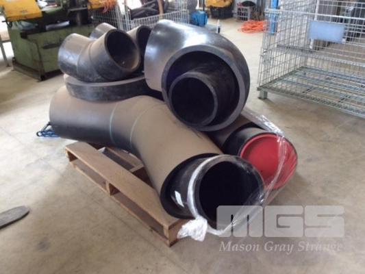 ASSORTED POLY FITTINGS, 600, 450, & 280mm, BENDS, ELBOWS, VALVE SPACER, CAPS, ETC