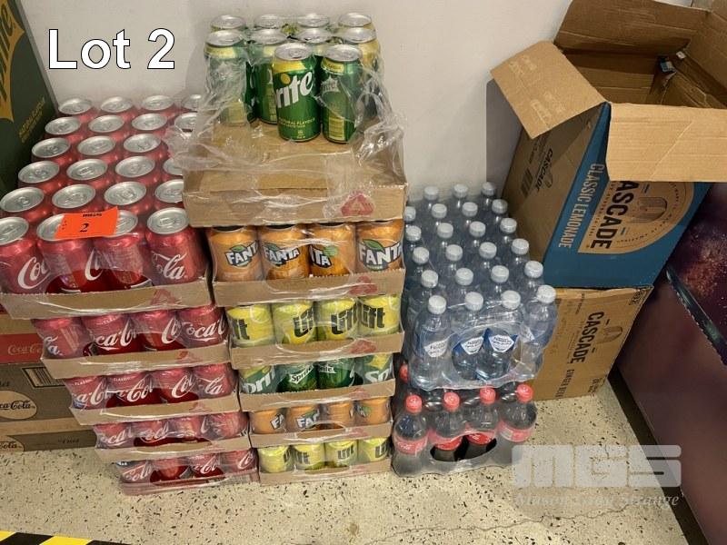 ASSORTED SOFT DRINKS, 250 x CANS, COKE, FANTA, SPRITE, LIFT & 80 x BOTTLES, COKE, WATER, GINGER BEER & LEMONADE