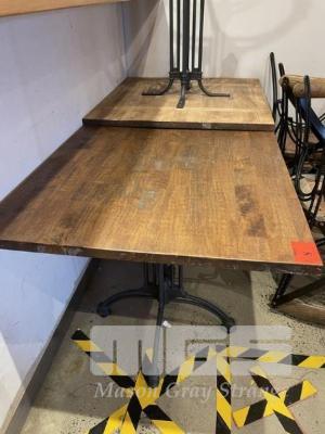 3 x RUSTIC DINING TABLES, 80 x 80cm, TIMBER TOPPED, CAST IRON BASE