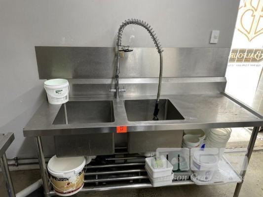 TWIN BOWL STAINLESS STEEL SINK, 2 TIER WITH SPLASHBACK, 180 x 70cm & MIXER TAP