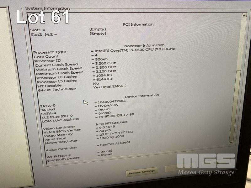 ALL-IN-ONE PC, DELL OPTIPLEX 7440, CORE i5 6500 (6TH GEN) @ 3.2GHz, 8GB DDR4 RAM, 256GB SSD, DVD-RW, INBUILT 23.8" FHD WIDESCREEN (1920x1080), INTEL HD VIDEO, WEBCAM, 8 x USB, WINDOWS 10 HOME INSTALLED, KEYBOARD & MOUSE S/N:9L31LG2