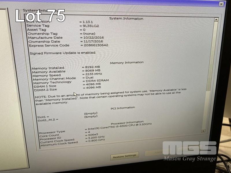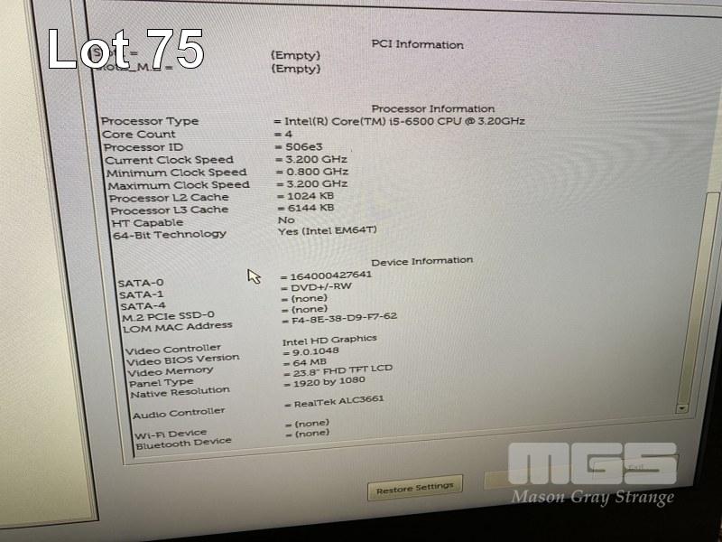 ALL-IN-ONE PC, DELL OPTIPLEX 7440, CORE i5 6500 (6TH GEN) @ 3.2GHz, 8GB DDR4 RAM, 256GB SSD, DVD-RW, INBUILT 23.8" FHD WIDESCREEN (1920x1080), INTEL HD VIDEO, WEBCAM, 8 x USB, WINDOWS 10 HOME INSTALLED, KEYBOARD & MOUSE S/N:9L35LG2
