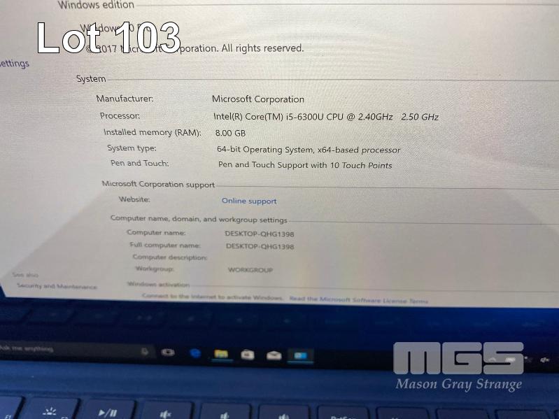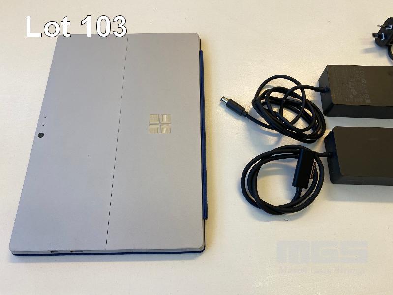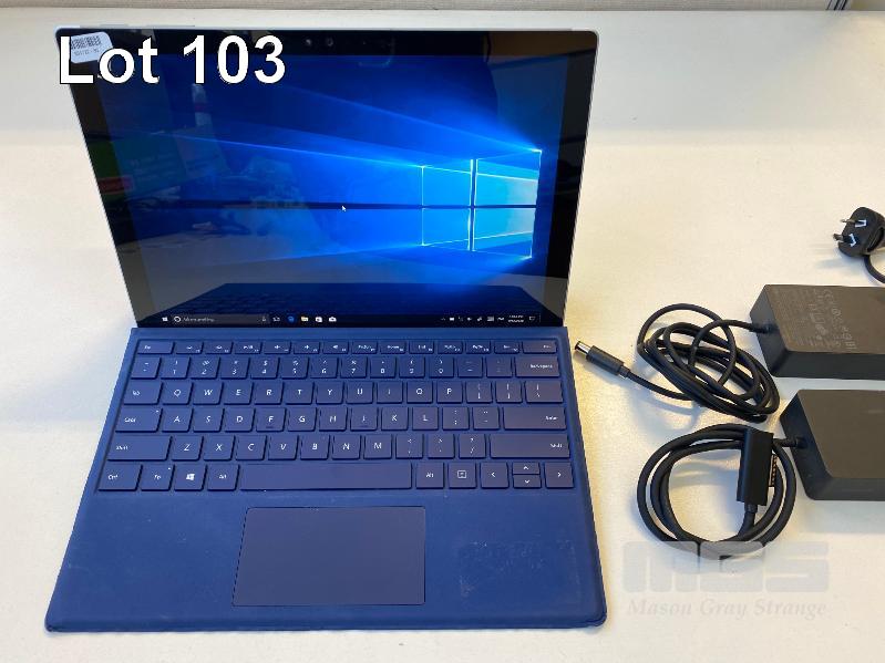 TABLET PC, MICROSOFT SURFACE PRO 4, MODEL 1724, CORE i5 6300U (6TH GEN) @ 2.4GHz, 8GB RAM, 256GB SSD, 12.3" TOUCHSCREEN, Wi-Fi, WINDOWS 10 PRO INSTALLED, KEYBOARD TYPE COVER, SURFACE DOCK (1661) WITH DOCK POWER SUPPLY (1749) S/N:091713754953