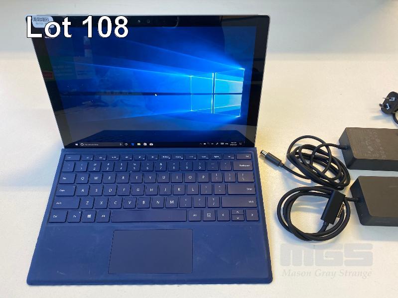 TABLET PC, MICROSOFT SURFACE PRO 4, MODEL 1724, CORE i5 6300U (6TH GEN) @ 2.4GHz, 8GB RAM, 256GB SSD, 12.3" TOUCHSCREEN, Wi-Fi, WINDOWS 10 PRO INSTALLED, KEYBOARD TYPE COVER, SURFACE DOCK (1661) WITH DOCK POWER SUPPLY (1749) S/N:021306271453