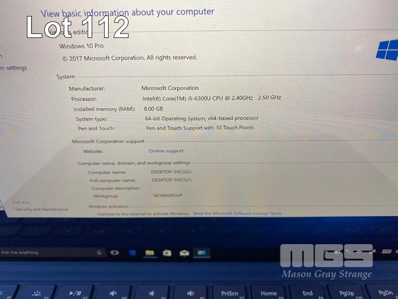 TABLET PC, MICROSOFT SURFACE PRO 4, MODEL 1724, CORE i5 6300U (6TH GEN) @ 2.4GHz, 8GB RAM, 256GB SSD, 12.3" TOUCHSCREEN, Wi-Fi, WINDOWS 10 PRO INSTALLED, KEYBOARD TYPE COVER, SURFACE DOCK (1661) WITH DOCK POWER SUPPLY (1749) S/N:091720254953