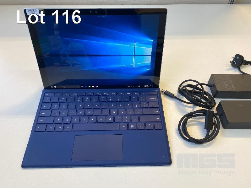 TABLET PC, MICROSOFT SURFACE PRO 4, MODEL 1724, CORE i5 6300U (6TH GEN) @ 2.4GHz, 8GB RAM, 256GB SSD, 12.3" TOUCHSCREEN, Wi-Fi, WINDOWS 10 PRO INSTALLED, KEYBOARD TYPE COVER, SURFACE DOCK (1661) WITH DOCK POWER SUPPLY (1749) S/N:015128464853
