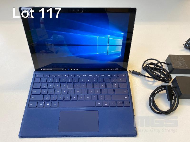 TABLET PC, MICROSOFT SURFACE PRO 4, MODEL 1724, CORE i5 6300U (6TH GEN) @ 2.4GHz, 8GB RAM, 256GB SSD, 12.3" TOUCHSCREEN, Wi-Fi, WINDOWS 10 PRO INSTALLED, KEYBOARD TYPE COVER, SURFACE DOCK (1661) WITH DOCK POWER SUPPLY (1749) S/N:045759555153