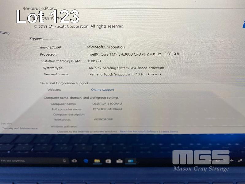 TABLET PC, MICROSOFT SURFACE PRO 4, MODEL 1724, CORE i5 6300U (6TH GEN) @ 2.4GHz, 8GB RAM, 256GB SSD, 12.3" TOUCHSCREEN, Wi-Fi, WINDOWS 10 PRO INSTALLED, KEYBOARD TYPE COVER, SURFACE DOCK (1661) WITH DOCK POWER SUPPLY (1749) S/N:029033465153