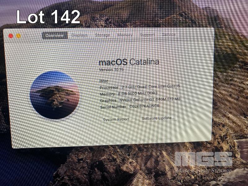 APPLE iMAC (A1418), CORE i5 3330S (3RD GEN) @ 2.7GHz, 8GB DDR3 RAM, 512GB SSD, BUILT-IN 21.5" DISPLAY (1920x1080), 512MB NVIDIA GEFORCE GT 640M VIDEO, Wi-Fi, MAC OS 10.15 INSTALLED (NO KEYBOARD, NO MOUSE, NO APPLE POWER CORD) S/N:C02K67KADNCR
