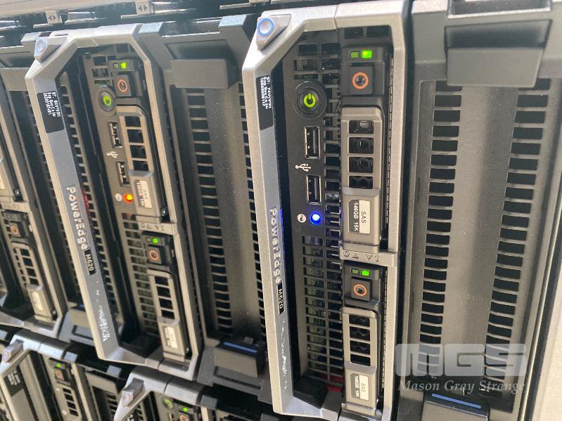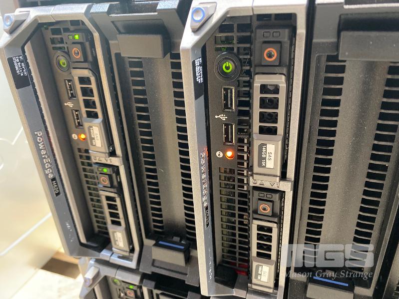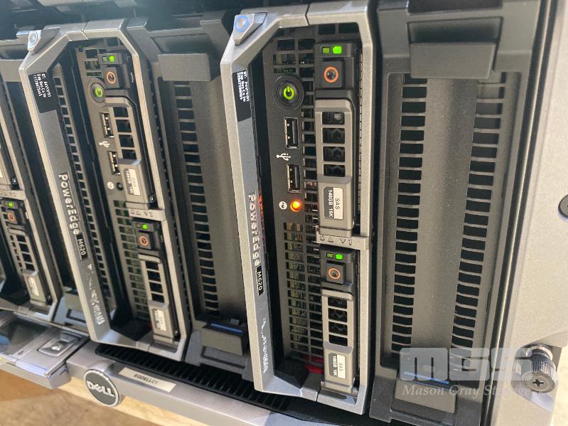 DELL POWEREDGE M1000e ENCLOSURE WITH 8 x DELL POWEREDGE BLADE SERVERS - ALL DELL POWEREDGE M620, 2 x XEON E5-2680 @ 2.7GHz, 192GB RAM, 2 x 146GB HDD (NO CABLES) S/N:F3VYWX1