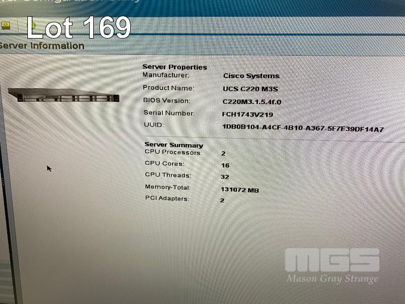RACKMOUNT SERVER, CISCO UCS C220 M3, 1U, 2 x XEON E5-2650 v2 @ 2.6GHz, 128GB RAM, NO HDD, FIBRE CHANNEL, 2 x 650W PSU S/N:FCH1743V219