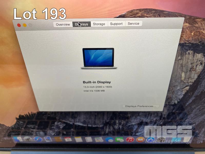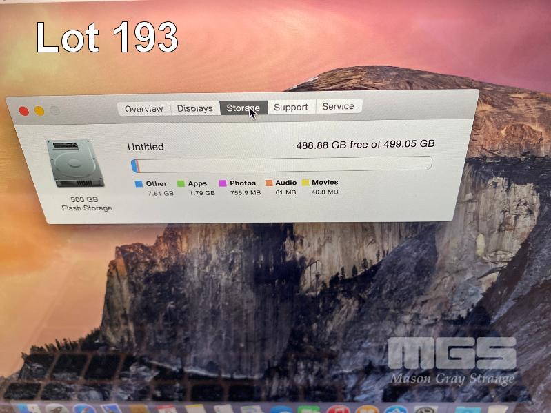 LAPTOP, APPLE MACBOOK PRO (A1502), CORE i5 4308U (4TH GEN) @ 2.8GHz, 8GB DDR3 RAM, 512GB SSD, 13.3" WIDESCREEN (2560x1600), INTEL HD VIDEO, Wi-Fi, MAC OS 10.10 INSTALLED & POWER SUPPLY (NOTE: MARKS ON SCREEN) S/N:C02NJ0U0G3QK