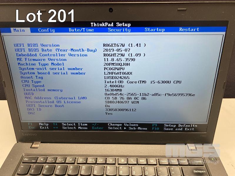 LAPTOP, LENOVO THINKPAD T460 (20FMS0QJ0H), CORE i5 6300U (6TH GEN) @ 2.4GHz, 16GB DDR3 RAM, 256GB SSD, 14" WIDESCREEN (1920x1080), INTEL HD VIDEO, Wi-Fi, BLUETOOTH, WINDOWS 10 PRO INSTALLED & POWER SUPPLY (NOTE: MARKS ON SCREEN) S/N:PC0GPWPV