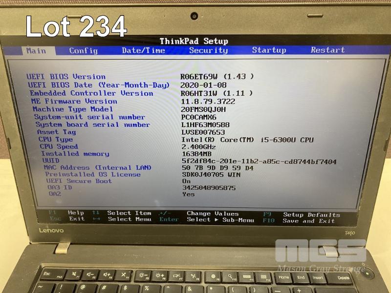 LAPTOP, LENOVO THINKPAD T460 (20FMS0QJ0H), CORE i5 6300U (6TH GEN) @ 2.4GHz, 16GB DDR3 RAM, 256GB SSD, 14" WIDESCREEN (1920x1080), INTEL HD VIDEO, Wi-Fi, BLUETOOTH, WINDOWS 10 PRO INSTALLED & POWER SUPPLY (NOTE: DAMAGE TO CASING BEHIND SCREEN, MARKS ON SCREEN, WHITE SPOT SCREEN BLEMISHES) S/N:PC0CAMX6