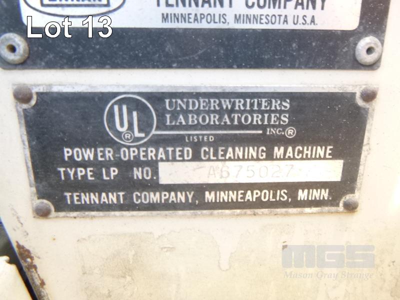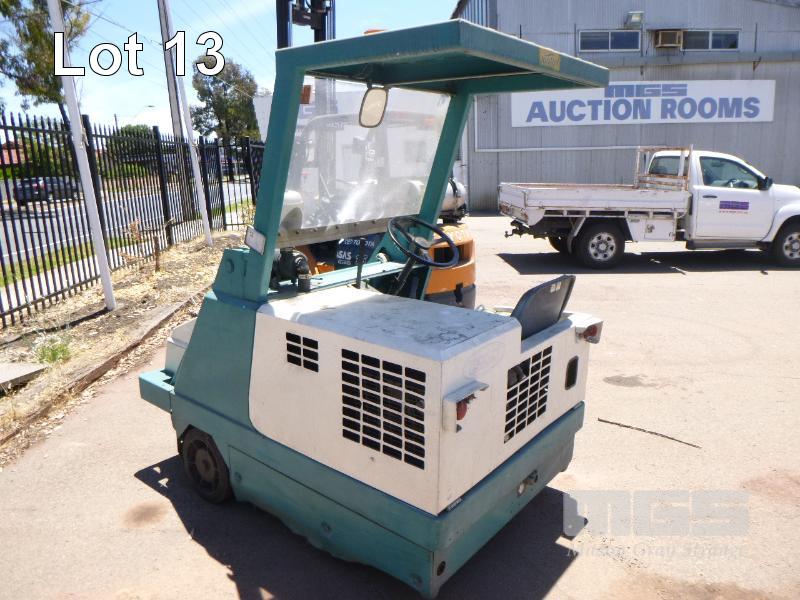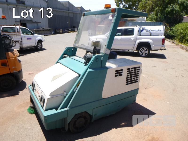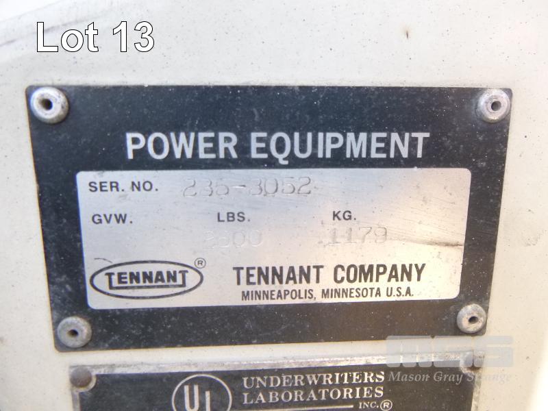 RIDE ON SWEEPER, TENNANT REG: APS 699 TYPE: LP4675027 S/NO: 235-3052 GVM: 1179kg HOURS: 2,702 INDICATED LPG SOLID TYRES KEY #14 TORN UPHOLSTERY,BROKEN TAIL LIGHTS & INDICATOR, DENTS & SCRATCHES