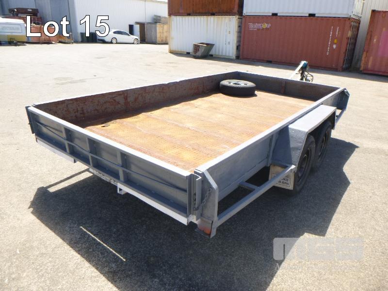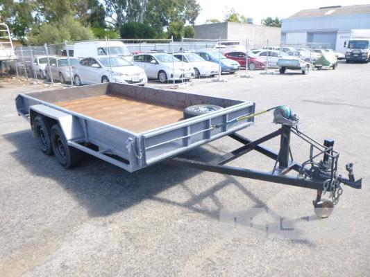 1987 OLYMPIC 14x6.3' TANDEM AXLE CAR CARRY TRAILER REG: YEU 133 (SA) VIN / CHASSIS: A9 50mm BALL HITCH, NEW BRAKES & TYRES, RAMPS, SPARE WHEEL & HAND WINCH (WITH PAPERS)