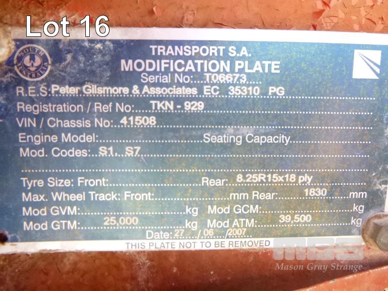 CIRCA 69 HOMEMADE 36-46' TRIAXLE LOW LOADER REG: TKN 929 VIN / CHASSIS: 41508 ATM: 39,500kg SPIDER RIMS, 8.25R15TR, DRUM, KING PIN, HYDRAULIC FORWARD RAMP & PROPS 2007 MODIFICATION PLATE