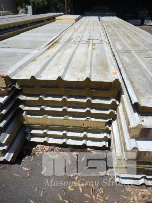 8 x ACOUSTIC ROOF PANELS, KINGSPAN MOD: KS1000RA ZINC COATED STEEL TRAPEZOIDAL PROFILE 100mm THICK INSULATION PERFORATED BACKING 1m x 12.5m APPROX