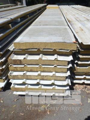 8 x ACOUSTIC ROOF PANELS, KINGSPAN MOD: KS1000RA ZINC COATED STEEL TRAPEZOIDAL PROFILE 100mm THICK INSULATION PERFORATED BACKING 1m x 12.5m APPROX
