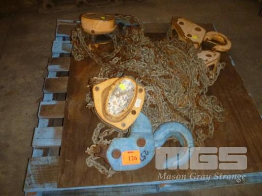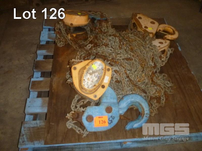3 x CHAIN BLOCK HOISTS, 10 TONNE CAPACITY, RUSTY CHAINS