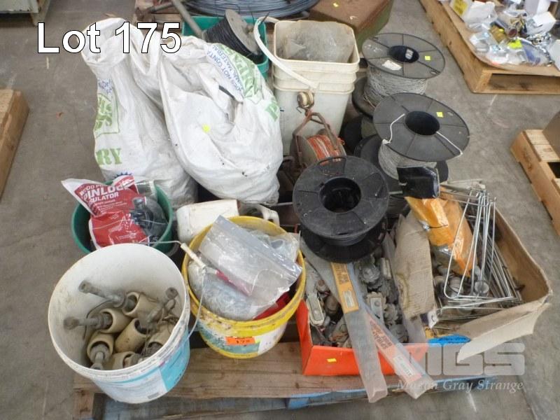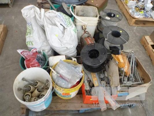 ASSORTED ELECTRIC FENCE PARTS, INC WIRE, INSULATORS, STAND OFFS, STRAINERS, ETC, 1 x PALLET