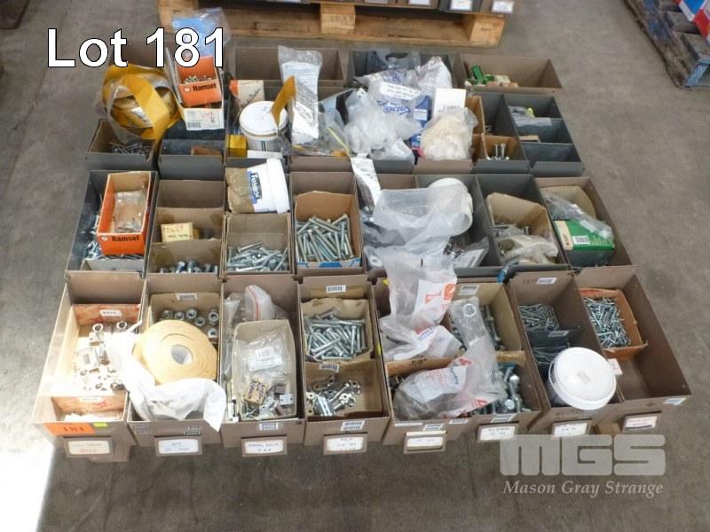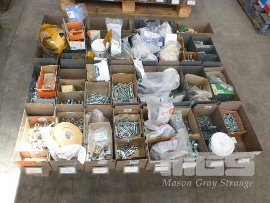 SCREWS, BOLTS, NUTS, TEMP PRESSURE VALVES & CLAMPS IN METAL TRAYS, 1 x PALLET