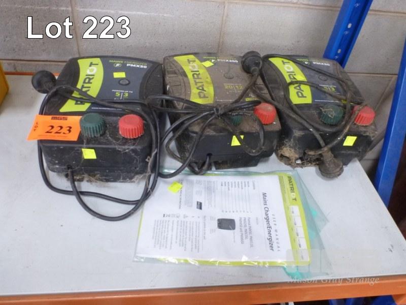 3 x ELECTRIC FENCE ENERGISERS, 2 x PATRIOT PMX50 1 x PATRIOT PMX200 240V