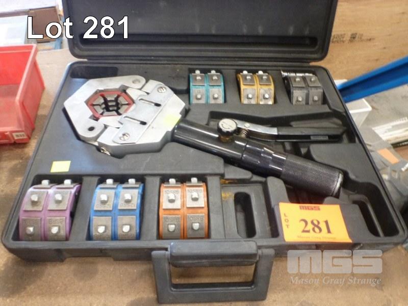 MASTERCOOL, HYDRA-KRIMP 71500 HAND HELD HYDRAULIC CRIMPING TOOL WITH 7 x ASSORTED CRIMPING DIES & PLASTIC CARY CASE