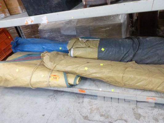 CANVAS TENT/ANNEXE INCLUDING 2 x BAGS STEEL POLES & 2 x TARP COVERS, 1 x SHELF