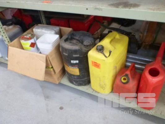 FIBREGLASS SUNDRIES, 3 x ASSORTED JERRY CANS & PART DRUM DIESEL ENGINE OIL