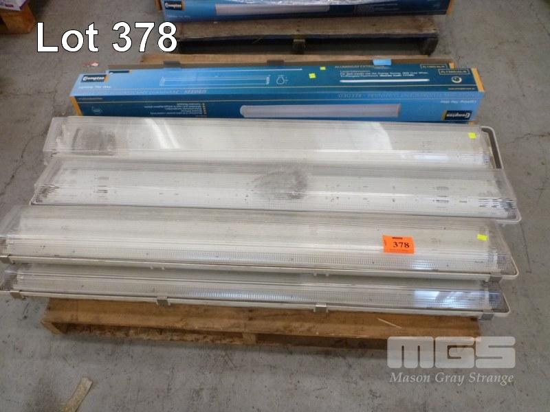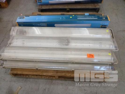 6 x DUAL TUBE FLURO LIGHT FIXTURES, WEATHERPROOF & 4 x CROMPTON SINGLE TUBE FIXTURES, 36w, 240V, 1 x PALLET