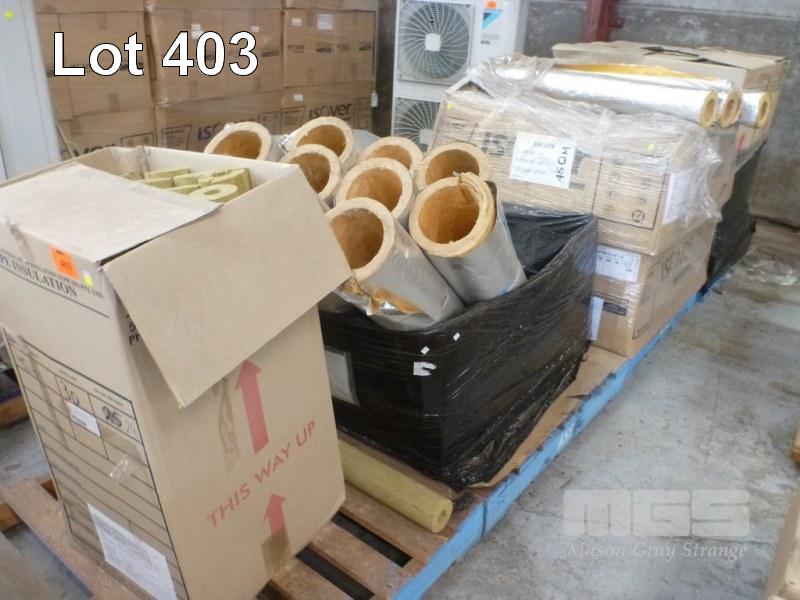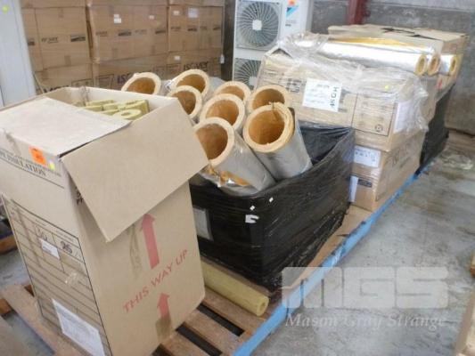 ASSORTED PIPE INSULATION 21m ROXUL PIPE INSULATION 30mm WALL x 1 1/4" IPS , 36 x FIBREGLASS PIPE INSULATION FOIL LAGGED, ISOVER 30mm WALL, 3" IPS x 120cm, 10 x FIBREGLASS PIPE INSULATION FOIL LAGGED, 30mm WALL, 6" IPS x 120cm, 32m ROXUL PIPE INSULATION 50mm WALL x 114mm OD 4 x PALLETS