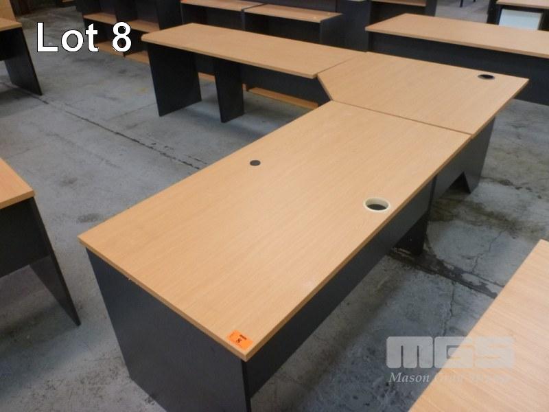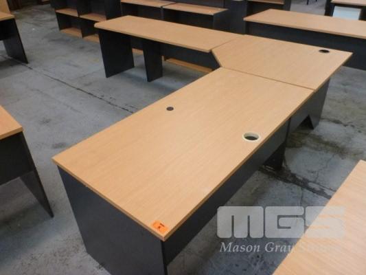 CORNER DESK 280 x 60cm LEFT HAND RETURN, 230 x 70cm RIGHT RETURN, BEECH/IRONSTONE LAMINATE