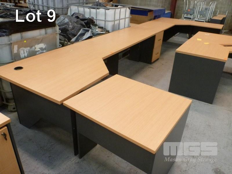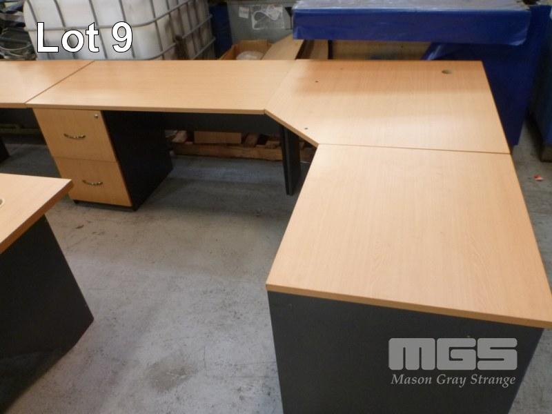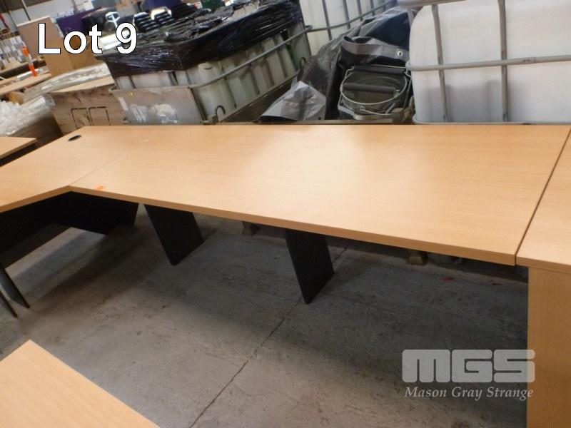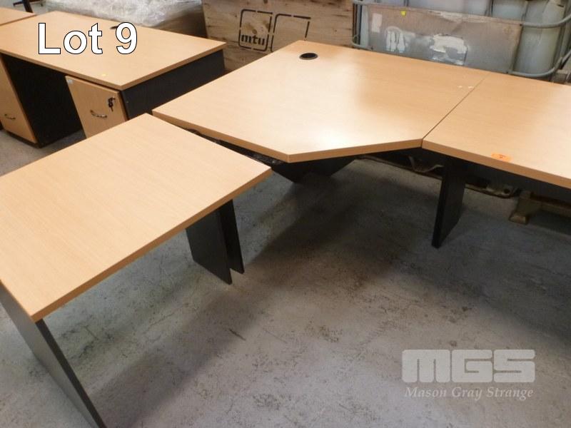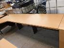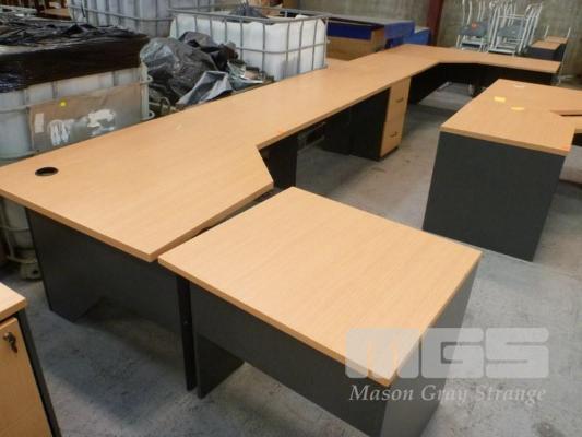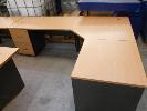 OFFICE DESK SECTIONS 2 x CORNER, 100 x 100cm, LEFT & RIGHT RETURN, 78 x 70cm, LEFT RETURN, 138 x 70cm, TABLE SECTION, 195 x 70cm, WITH 2 DRAWER UNIT, BEECH/IRONSTONE LAMINATE