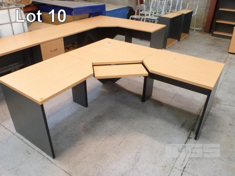 CORNER DESK, 210 x 210cm, WITH DROP DOWN KEYBOARD SHELF, BEECH/IRONSTONE LAMINATE