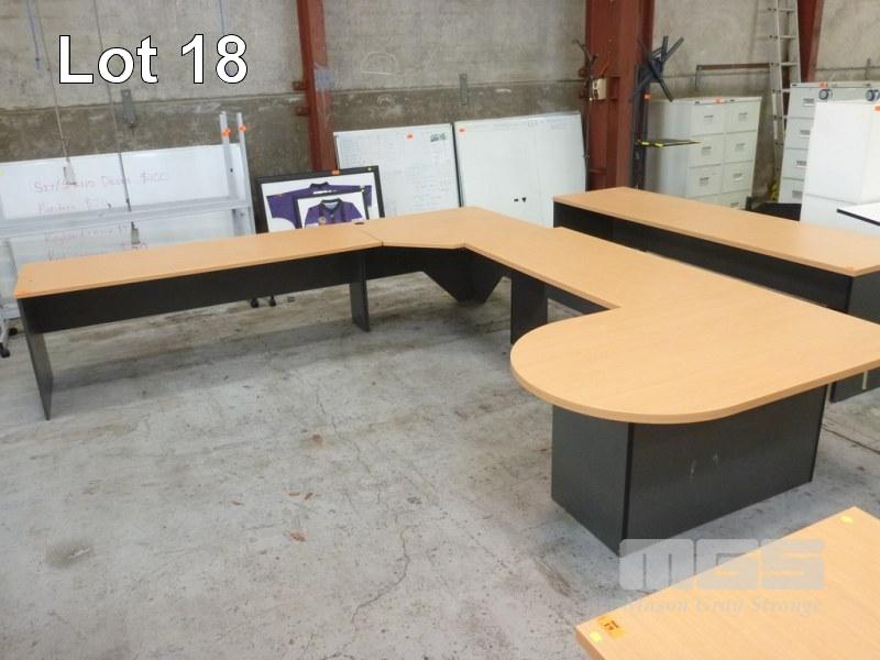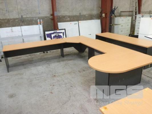 CORNER DESK WITH ISLAND RETURN, 300 x 335cm, BEECH/IRONSTONE LAMINATE