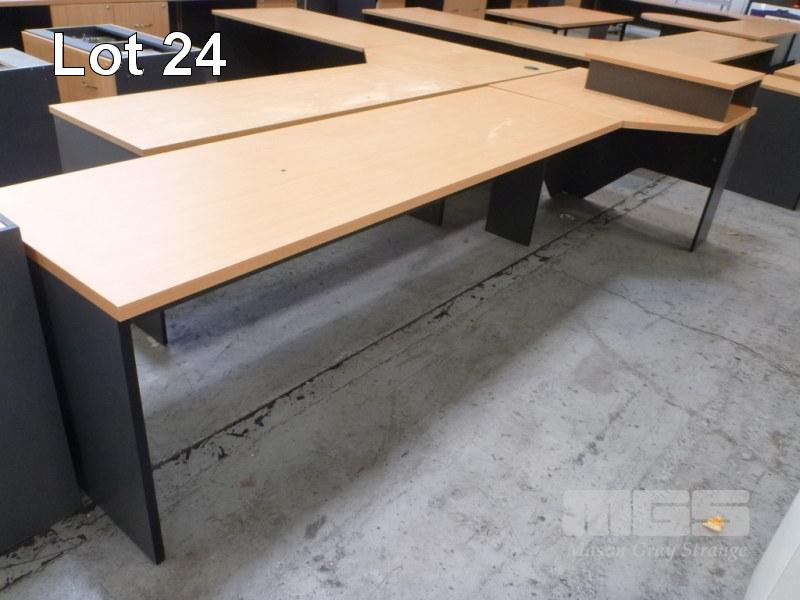 CORNER DESK SECTION, 100 x 100cm, WITH LEFT HAND RETURN, 233 x 70cm & DESK TOP RISER, 70 x 60cm, BEECH/IRONSTONE LAMINATE