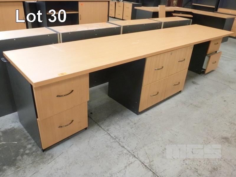 3 x STATIONERY DRAWER UNITS, 1 x 4 DRAWER & 2 x 2 DRAWER, BEECH/IRONSTONE LAMINATE WITH BEECH LAMINATE TOP, 326 x 70cm