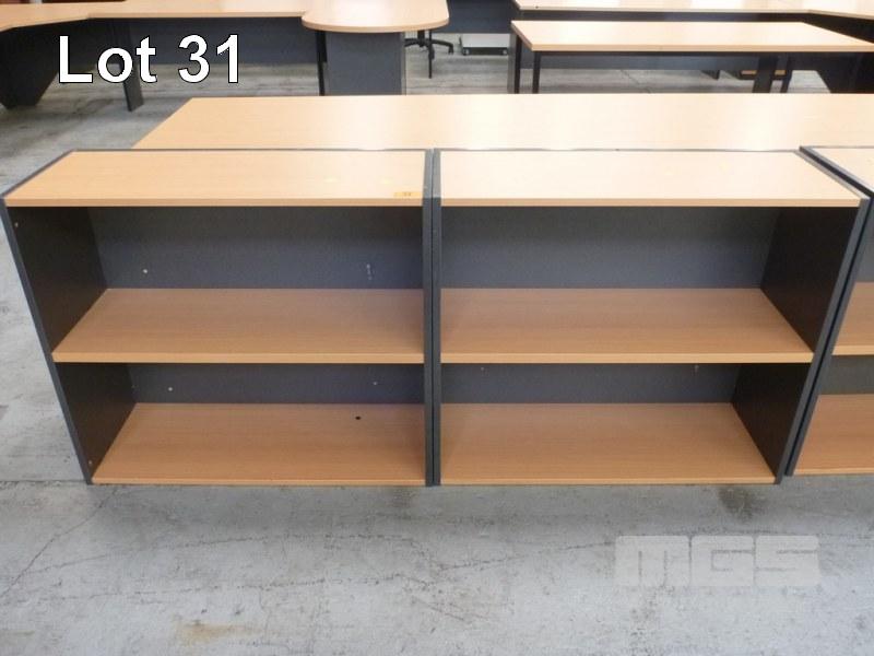 PAIR BOOKSHELVES, 2 TIER, 90 x 30 x 78cm (H), BEECH/IRONSTONE LAMINATE
